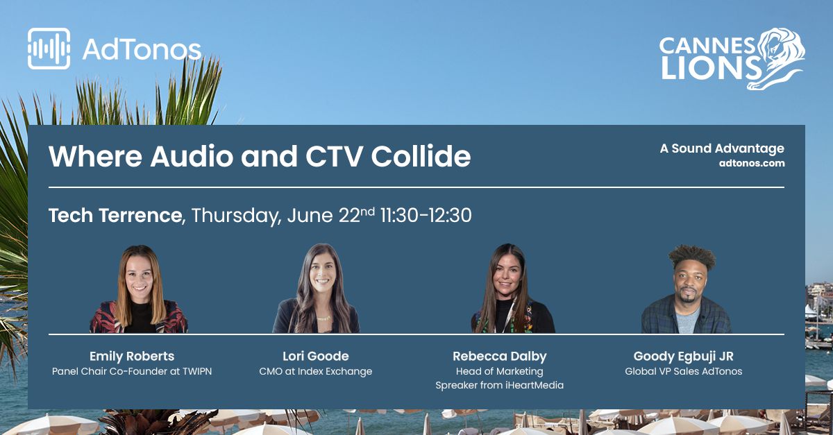The exciting “Where Audio and CTV Collide” panel at Tech Terrace Cannes Lions2023 with our Goody JR Egbuji, Rebecca Dalby from Spreaker, and Lori Goode from IndexExchange, moderated by Emily Roberts from The Women in Programmatic Network.