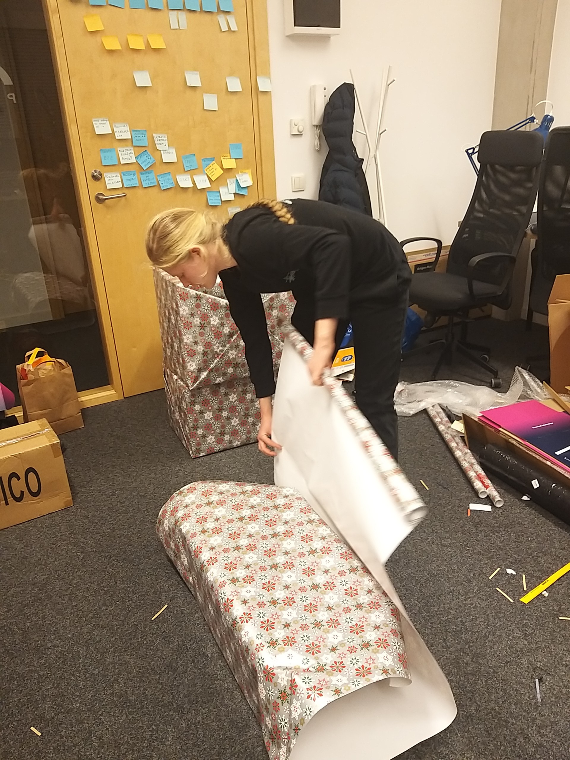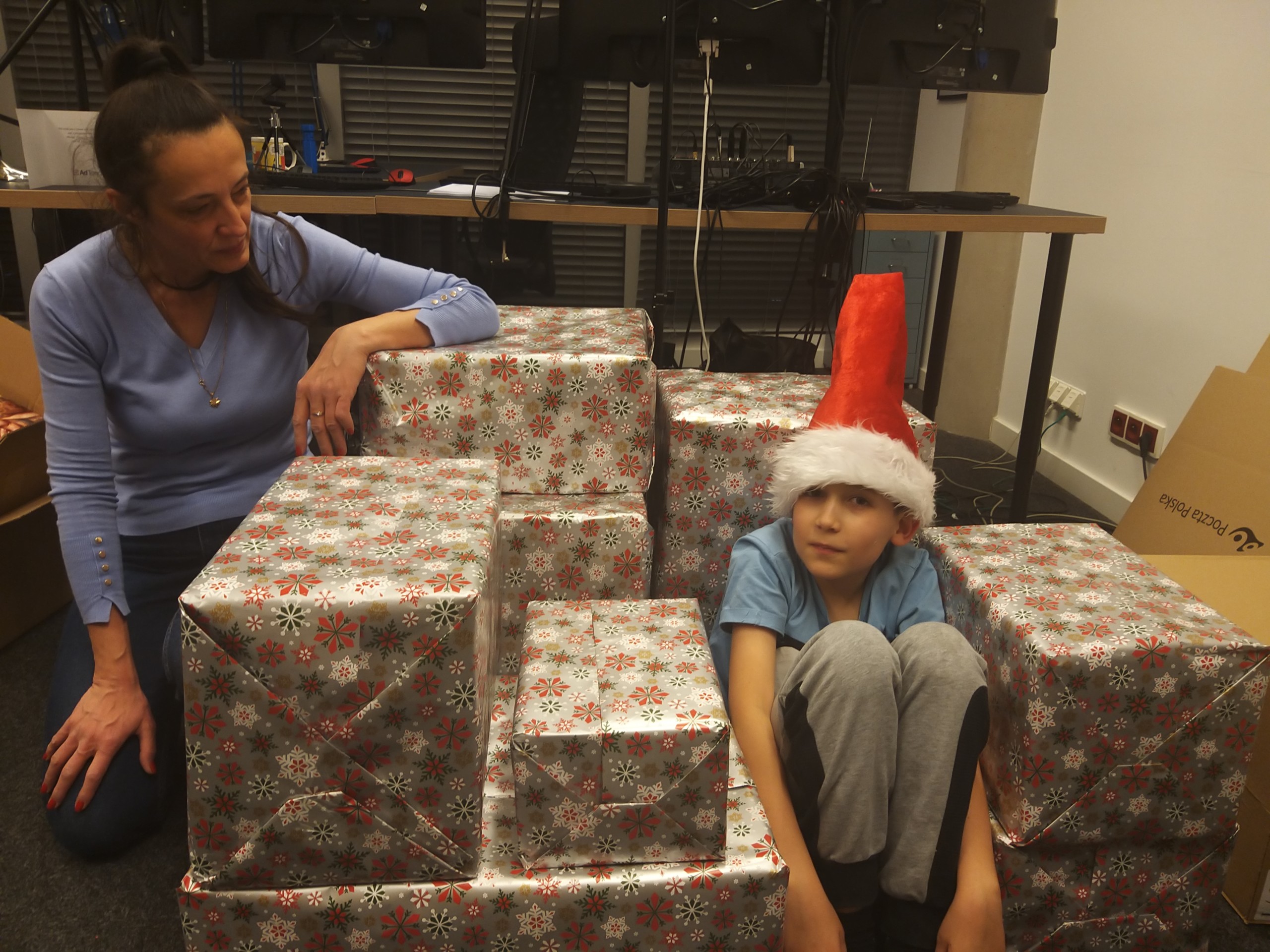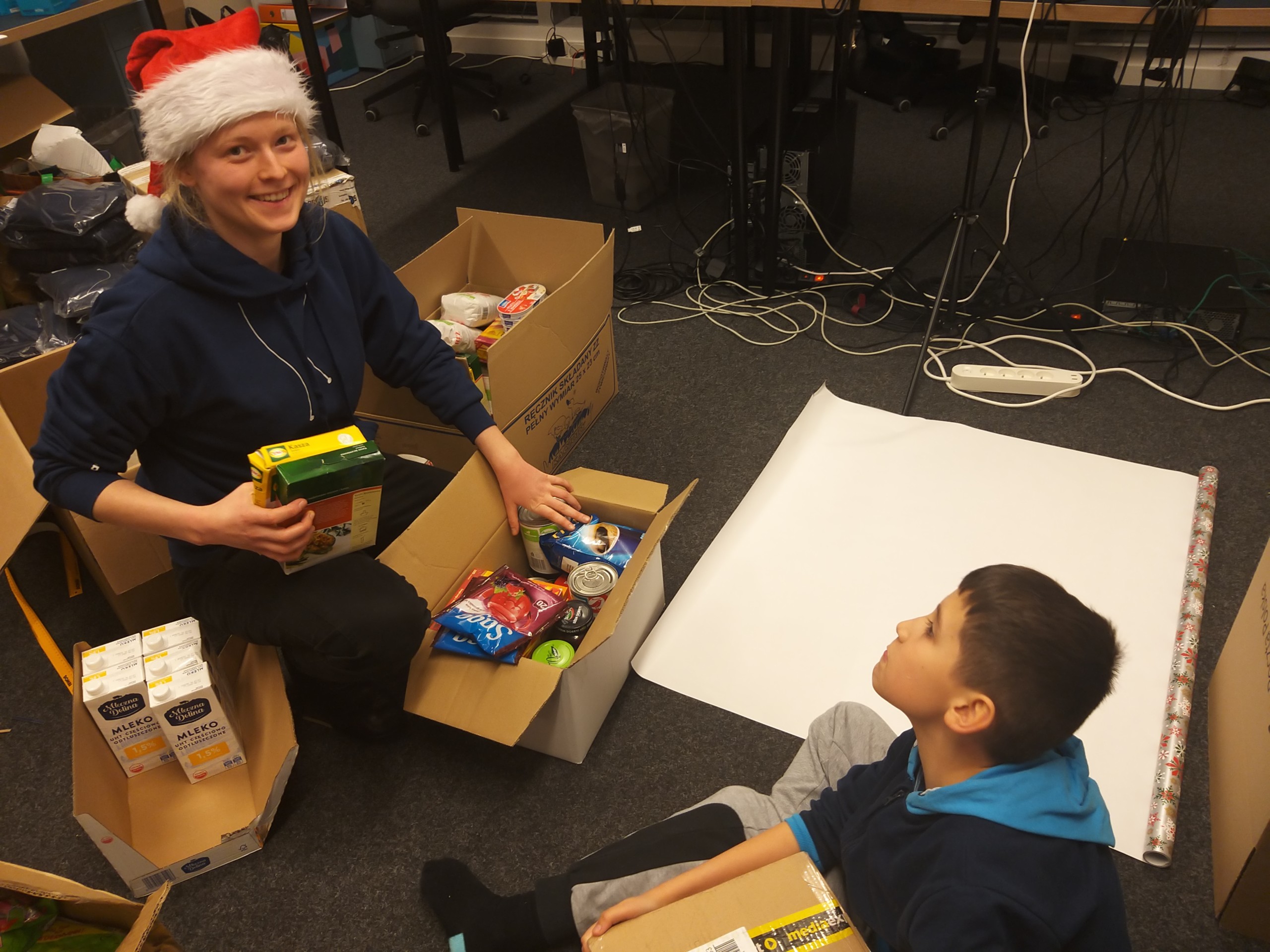 On Friday afternoon, Kasia and her son Dawid joined Oliwia and packing the products was in full swing. We wrapped the packed parcels with Christmas themes wrapping paper. It was also necessary to take the elevator to the parking lot and put it in the car.