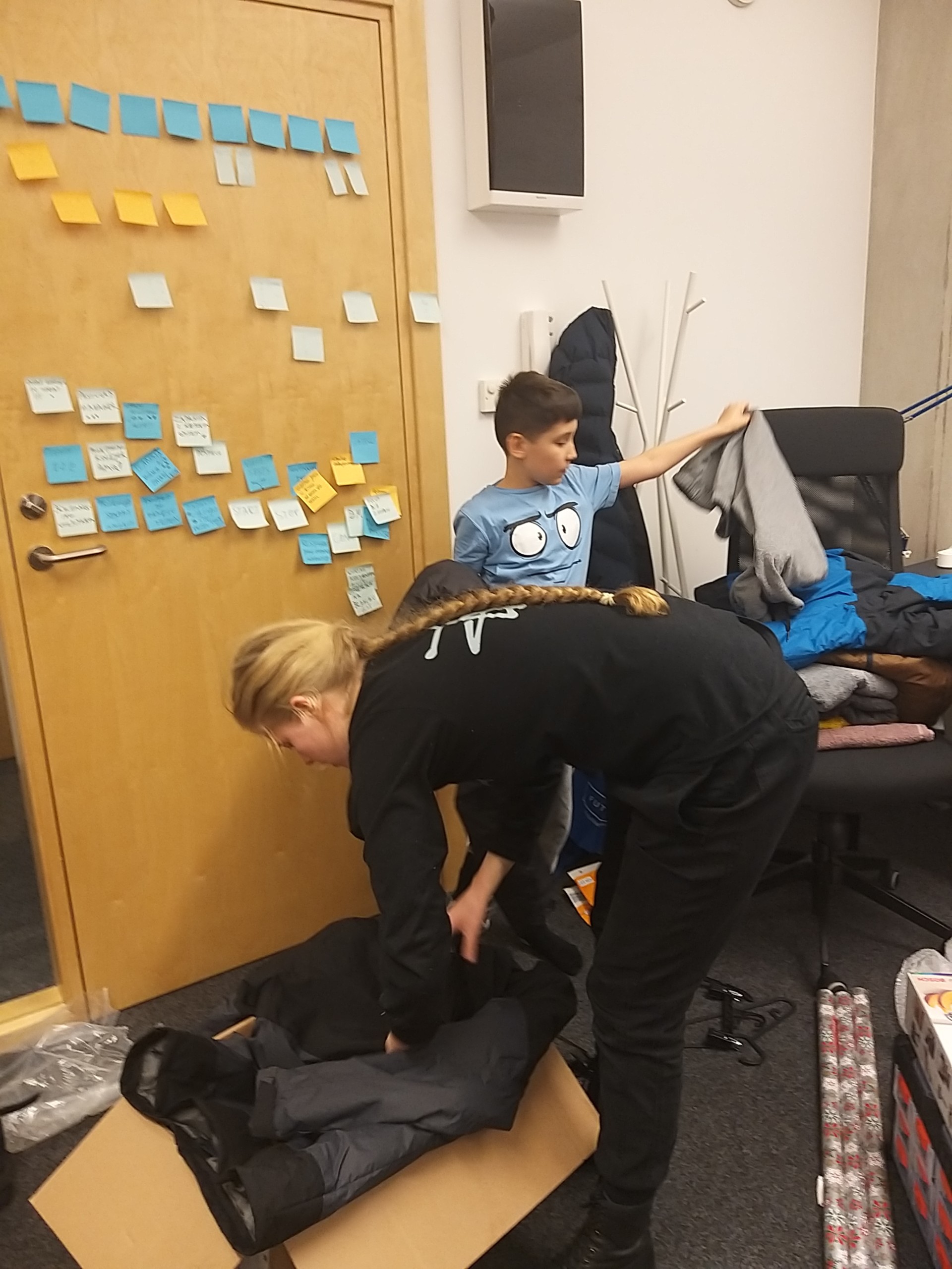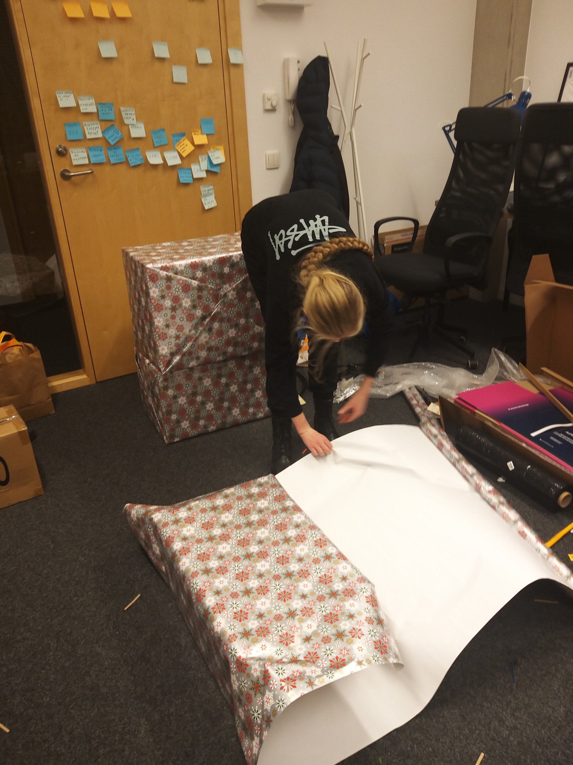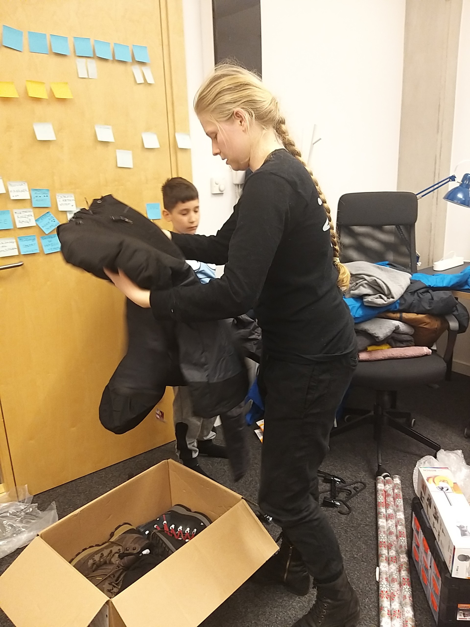 On Friday afternoon, Kasia and her son Dawid joined Oliwia and packing the products was in full swing. We wrapped the packed parcels with Christmas themes wrapping paper. It was also necessary to take the elevator to the parking lot and put it in the car.