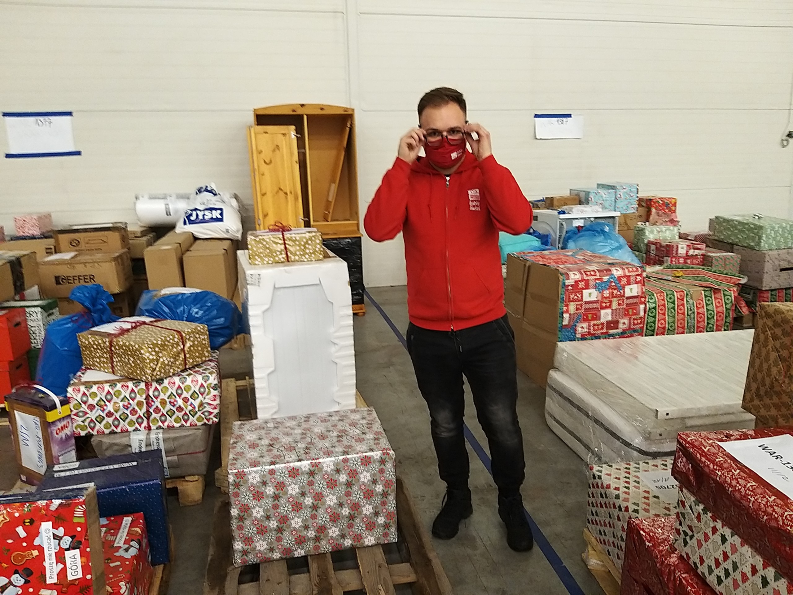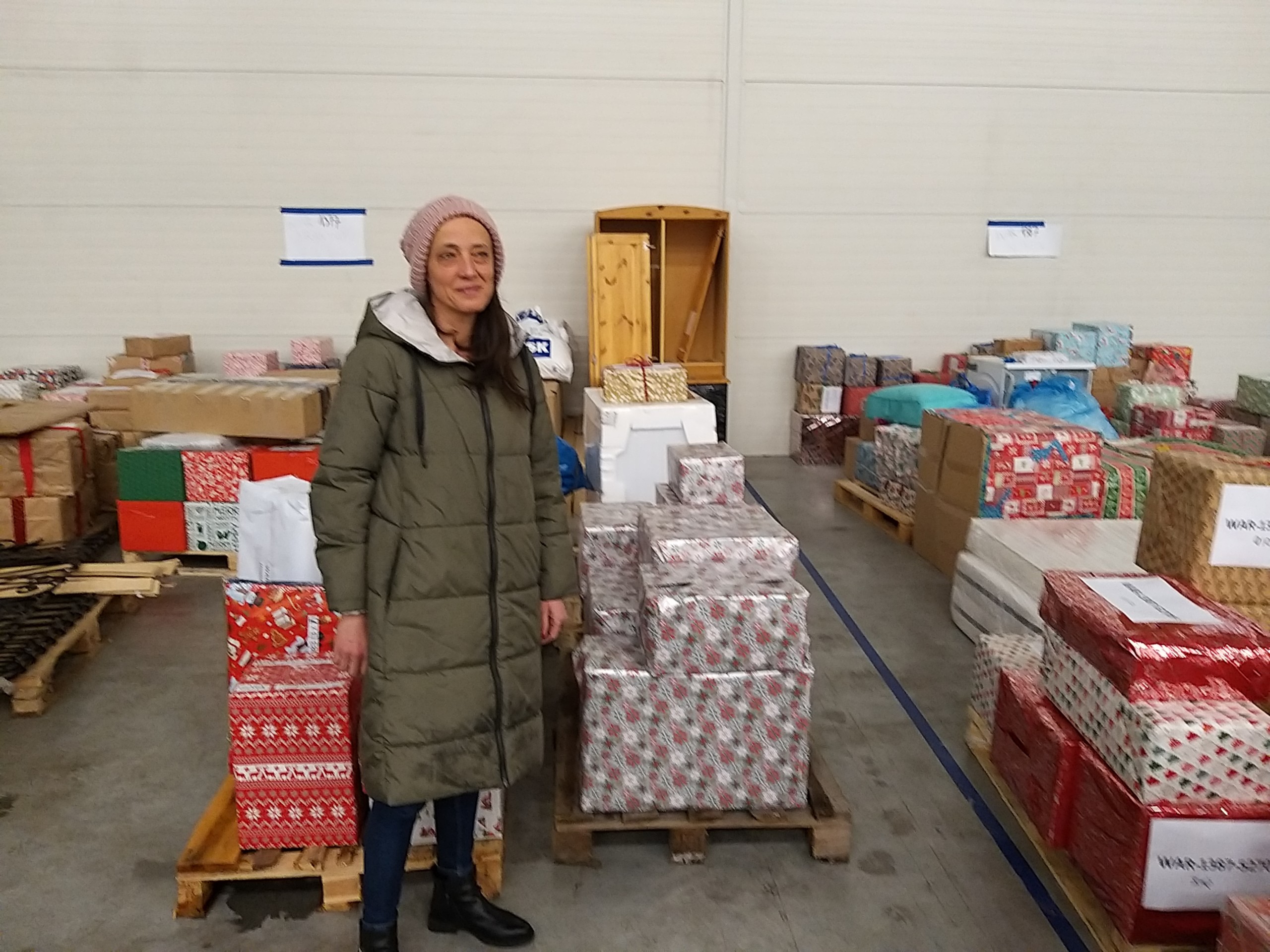 It was already evening, and time was moving quickly because the foundation collected parcels from donors until nine in the evening on Friday. Thankfully, Kasia arrived at the logistics centre just in time with all of the gifts. A kind volunteer helped unpack the packages from the car and our parcels stood on a pallet at 20:45 pm. Our 3-person team of packers were tired but thrilled to be helping a wonderful family.